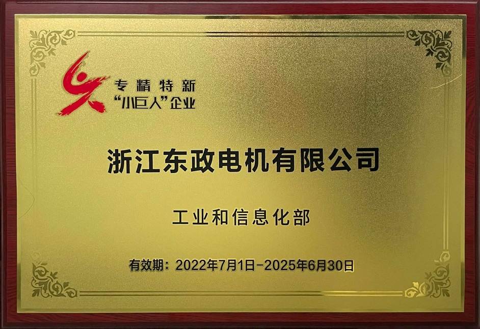东政电机成立于2003年,荣获国家高新技术企业,为浙江制造、浙江省“专精特新”中小企业、国家专精特新“小巨人”认定企业 。荣获浙江省创新型试点企业、浙江省专利示范企业、金华市劳动关系和谐企业、浙江省工人先锋号、东阳市政府特别奖、东阳市亩产税收英雄、东阳市长创新奖等荣誉称号。